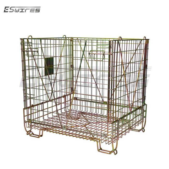 1. Pliable : économisez de l’espace, rentable 2. Facilement déplacé par chariot élévateur 3. Porte abaissée pour un accès facile une fois empilée 4. Points de soudure fermes, pas faciles à endommager |